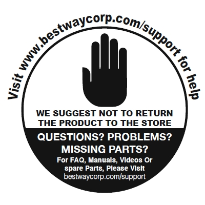 FOR FAQ, MANUALS, VIDEOS OR SPARE PARTS, PLEASE VISIT OUR SUPPORT PAGE: www.bestwaycorp.com/support.